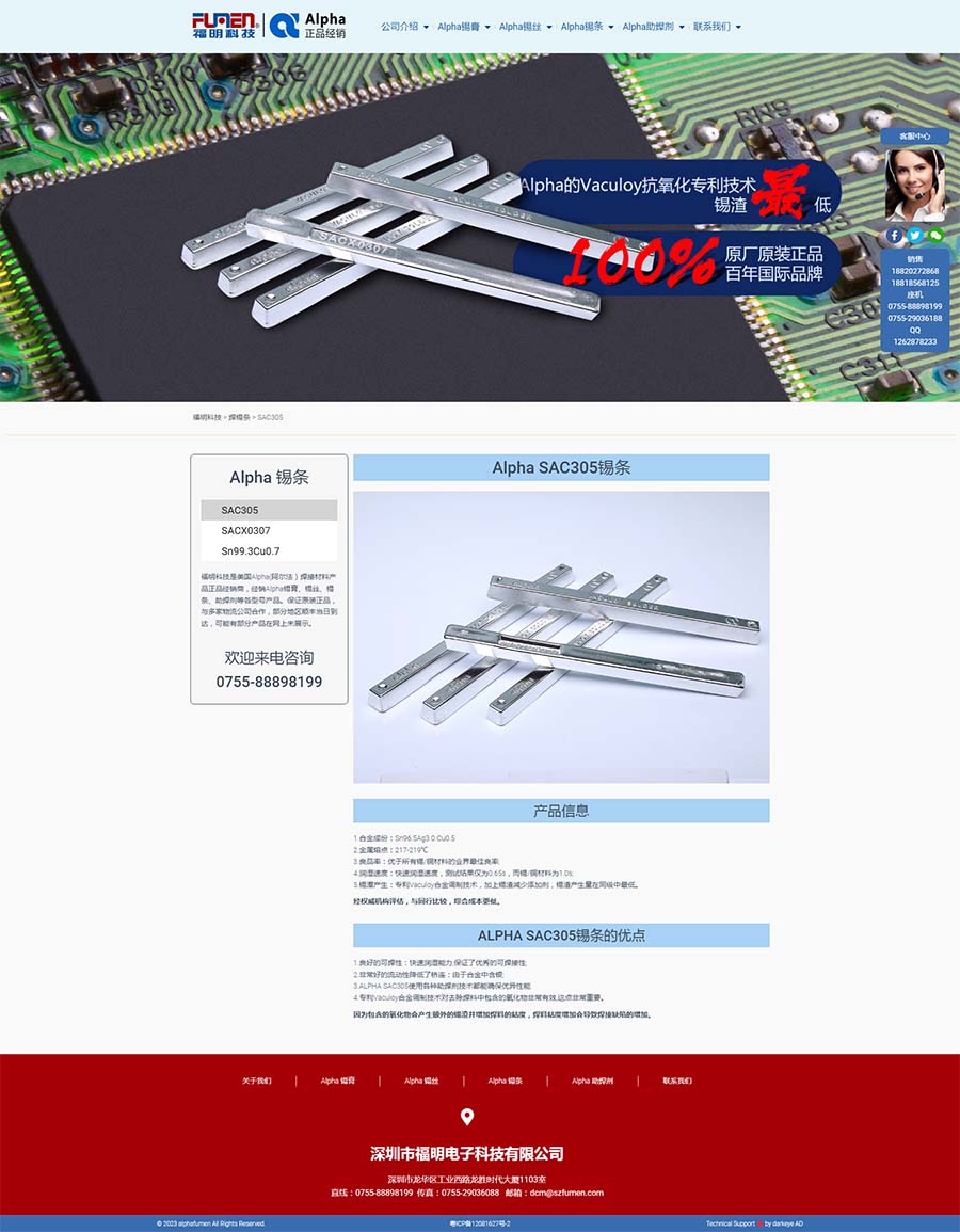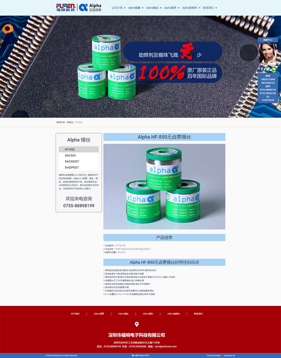 福明科技能夠與全球一流的焊錫品牌Alpha(阿爾法)合作,是福明科技的榮幸。我們將以最好的產(chǎn)品質(zhì)量、最快捷的售后服務(wù)、最優(yōu)惠的市場(chǎng)價(jià)格,為客戶提供高性價(jià)比的產(chǎn)品和優(yōu)質(zhì)的服務(wù)。