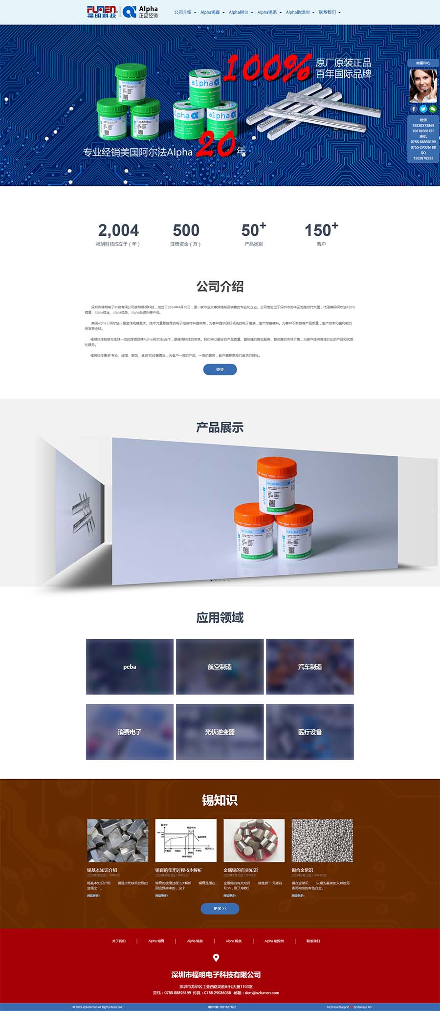專業(yè)無(wú)需多言,作品自會(huì)發(fā)聲深圳市福明電子科技有限公司簡(jiǎn)稱福明科技,成立于2004年4月16日,是一家專業(yè)從事焊錫制品銷售的專業(yè)化企業(yè)。公司地址位于深圳市龍華區(qū)龍勝時(shí)代大廈,代理美國(guó)阿爾法Alpha錫膏、Alpha錫絲、Alpha錫條、Alpha助焊劑等產(chǎn)品。